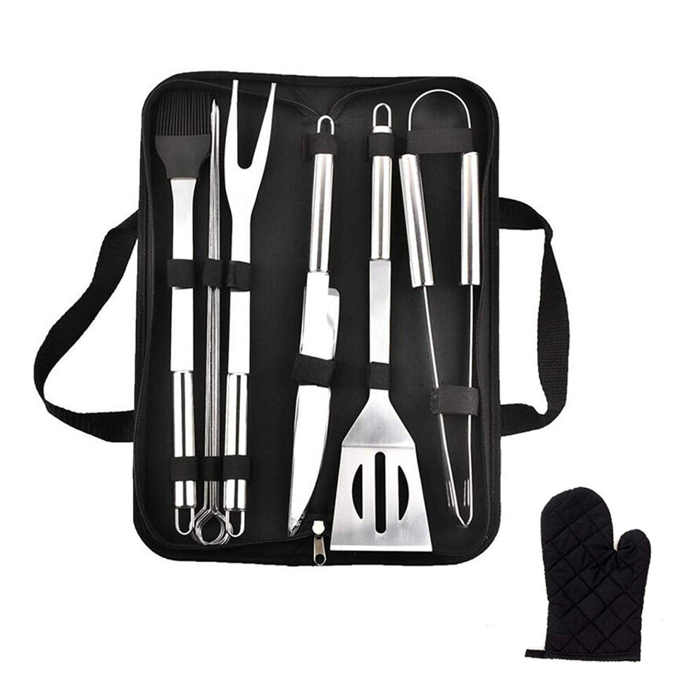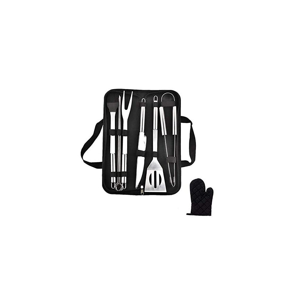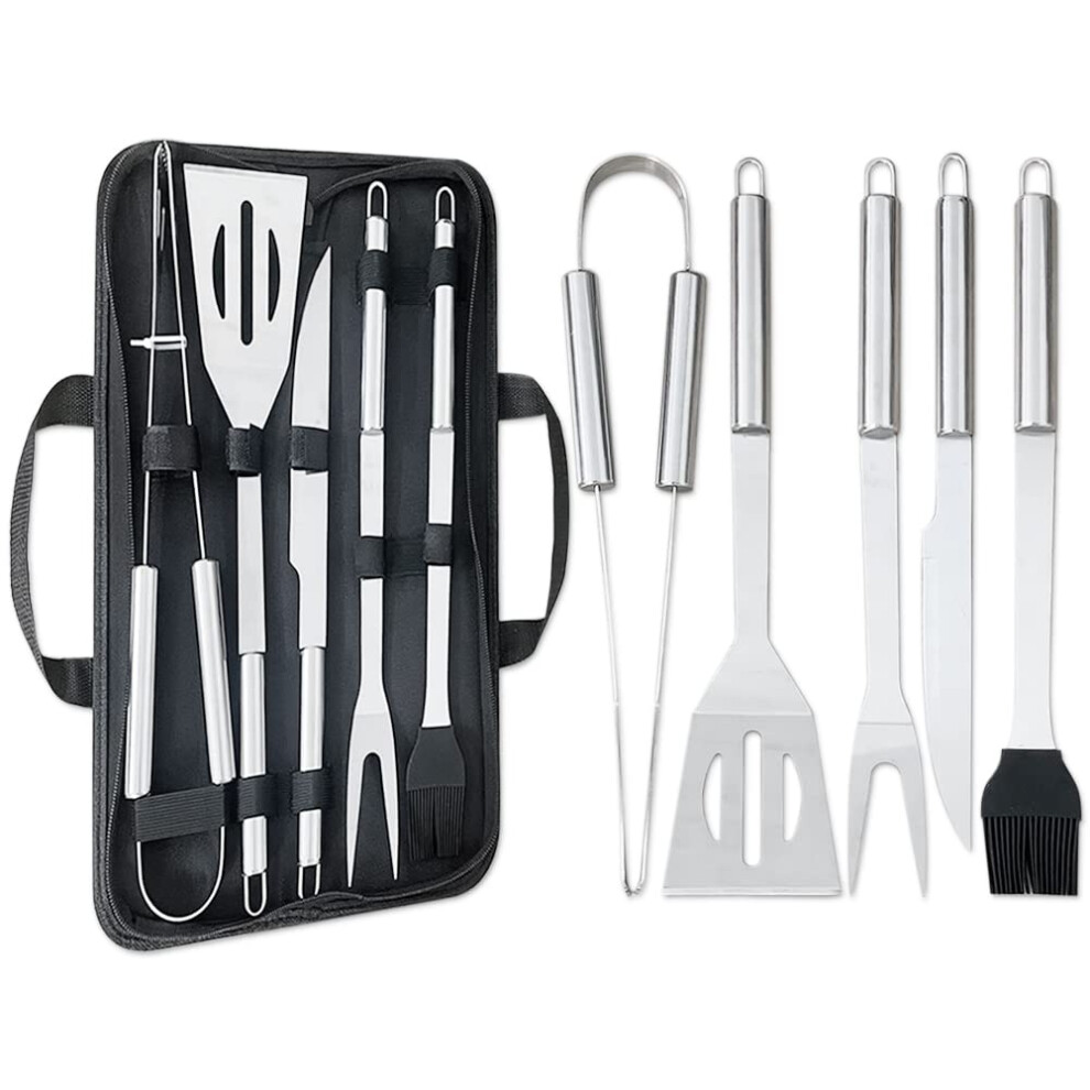 Liujiami 5Pcs Professional BBQ Tools Set with Storage Bag - Thickened Stainless Steel BBQ Accessories Set - Spatula, Fork, Basting Brush, Table knife,