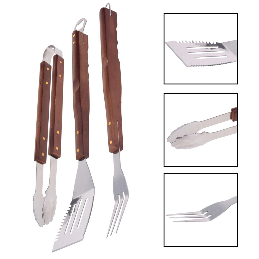 BBQ Tools Set 3PCS Stainless Steel Barbecue Fork Spatula Tongs Grill