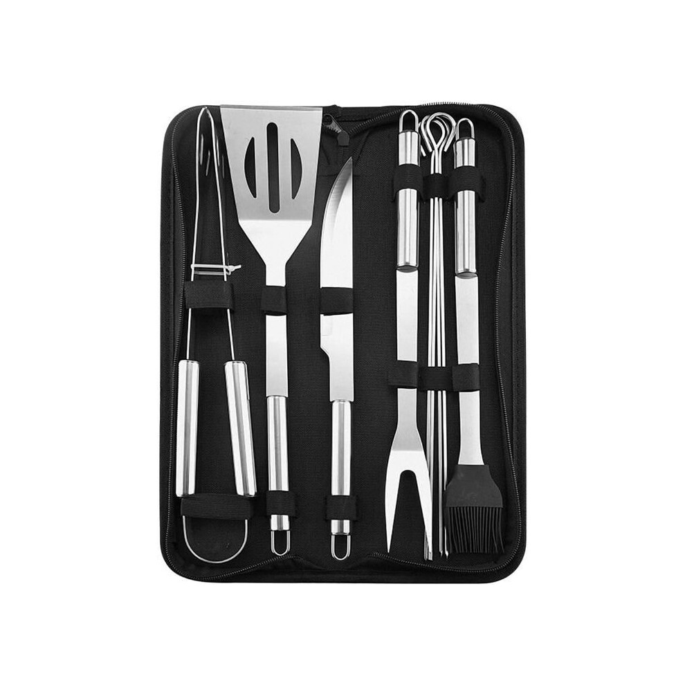 8Pcs BBQ Tools Set Stainless Steel Tableware Barbecue Grilling Accessories Kit with Portable Case for Outdoor Camping