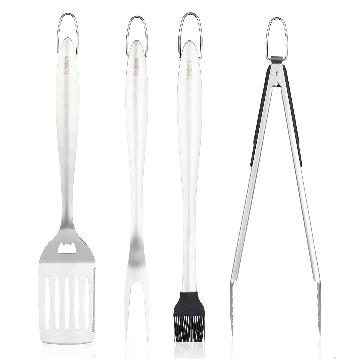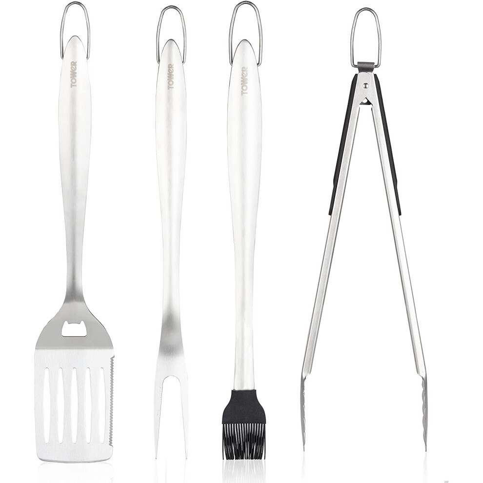 Tower T932002 4 Piece BBQ Tools Set, Stainless Steel, Silver