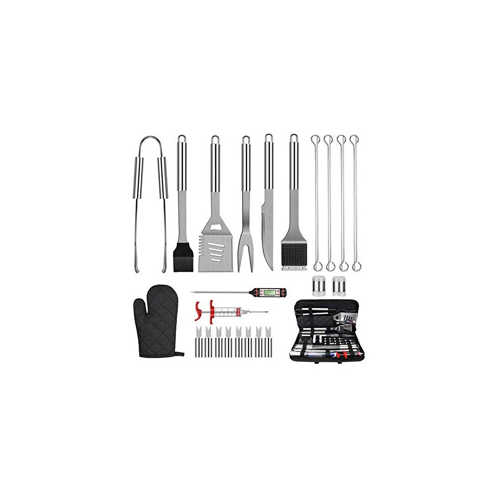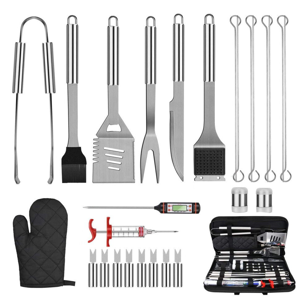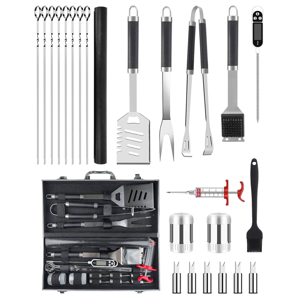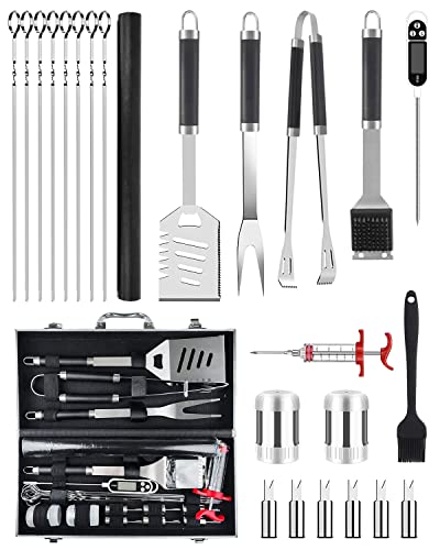 28Pcs BBQ Accessories Tools Set with Case, Stainless Steel BBQ Utensil Set Practical Cooking Utensils, Men BBQ Gifts Set for Various Barbecue Grills,