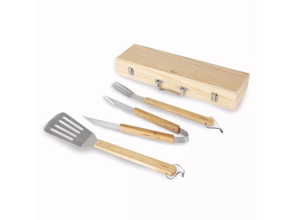3 Piece Wooden BBQ Tools Set with Box