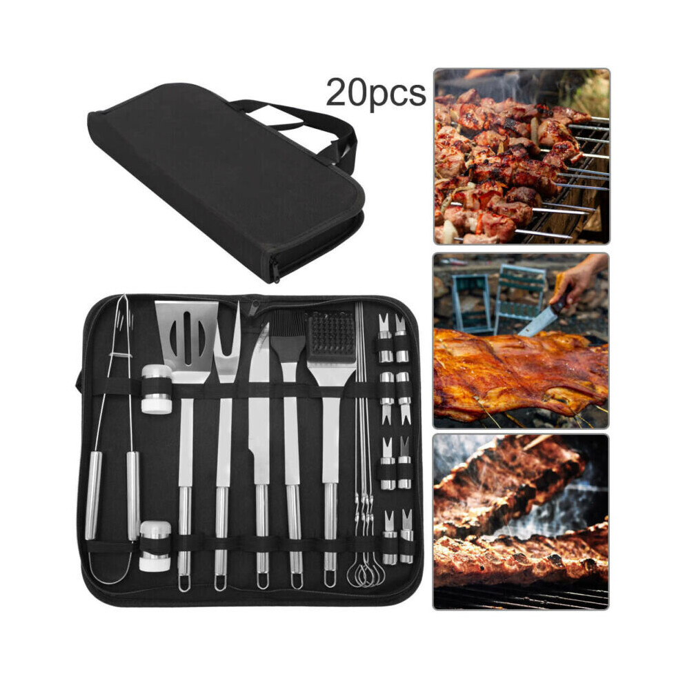 20pcs Stainless Steel BBQ Tools Set Kit Grill Cookware Fork Brush Tong Utensils