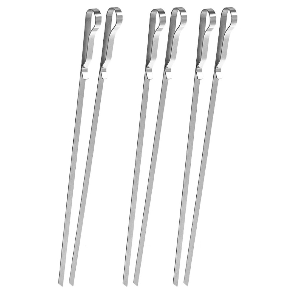 6Pcs Silver Stainless Steel Barbecue Skewers Durable Bbq Tools Set