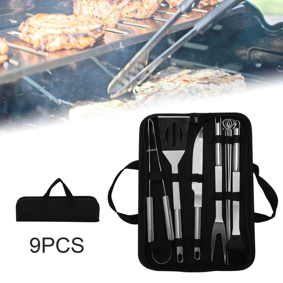 9Pcs Stainless Steel BBQ Grill Tools Set, Outdoor Indoor Accessories