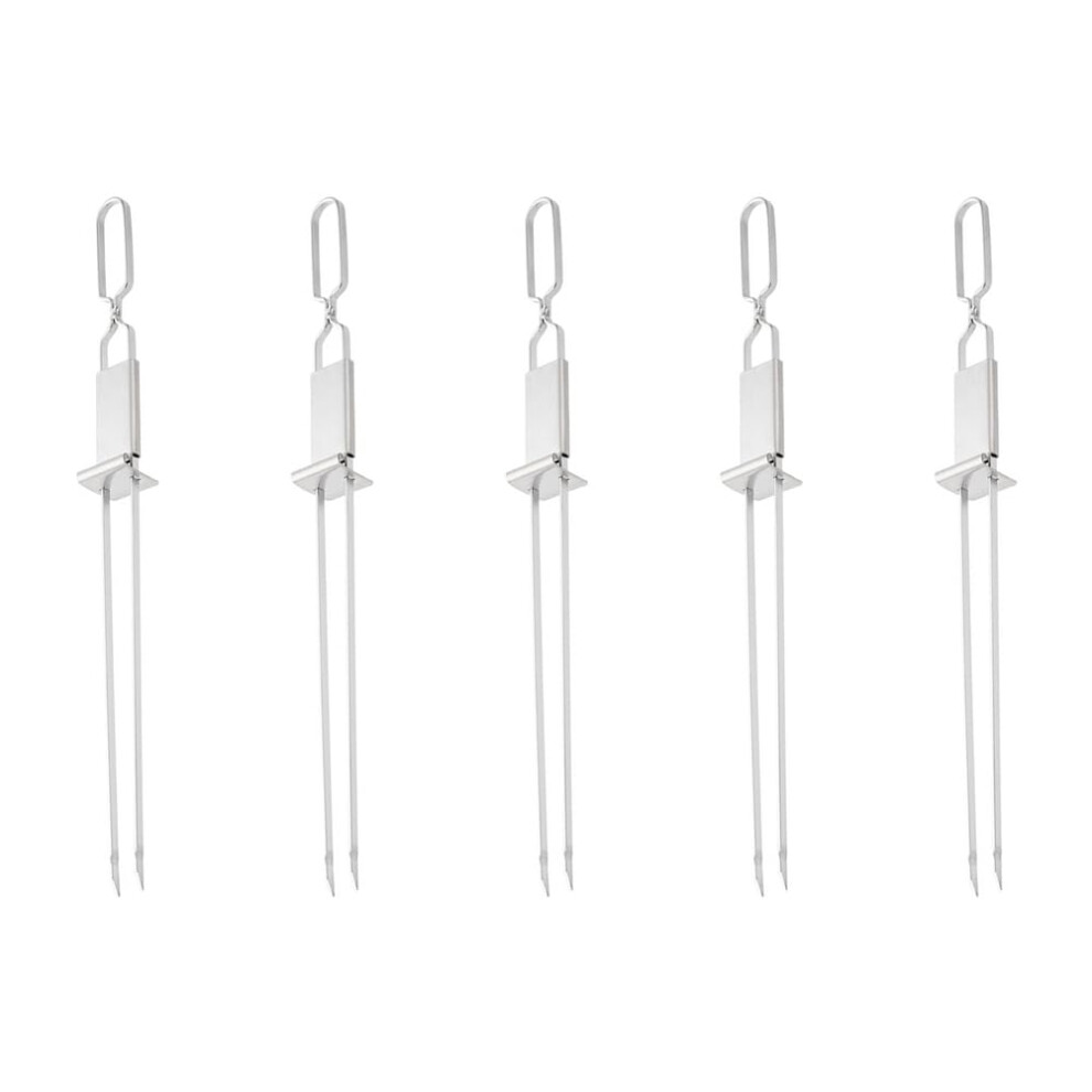 Stainless Steel Grill Skewers with Double Needle and Self-Advancing Plate, 5-Piece Outdoor BBQ Tools Set