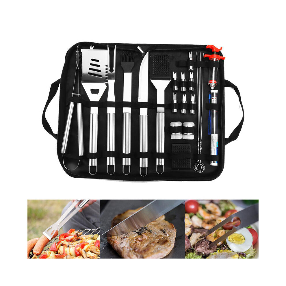 25Pcs Stainless Steel BBQ Tools Set Barbecue Accessories Tableware Outdoor Camping Cooking Tools Kit