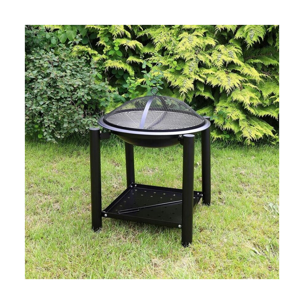 BBQ Durable Steel Standing Stand with Bowl Fire Pit w/ Lid and Shelf