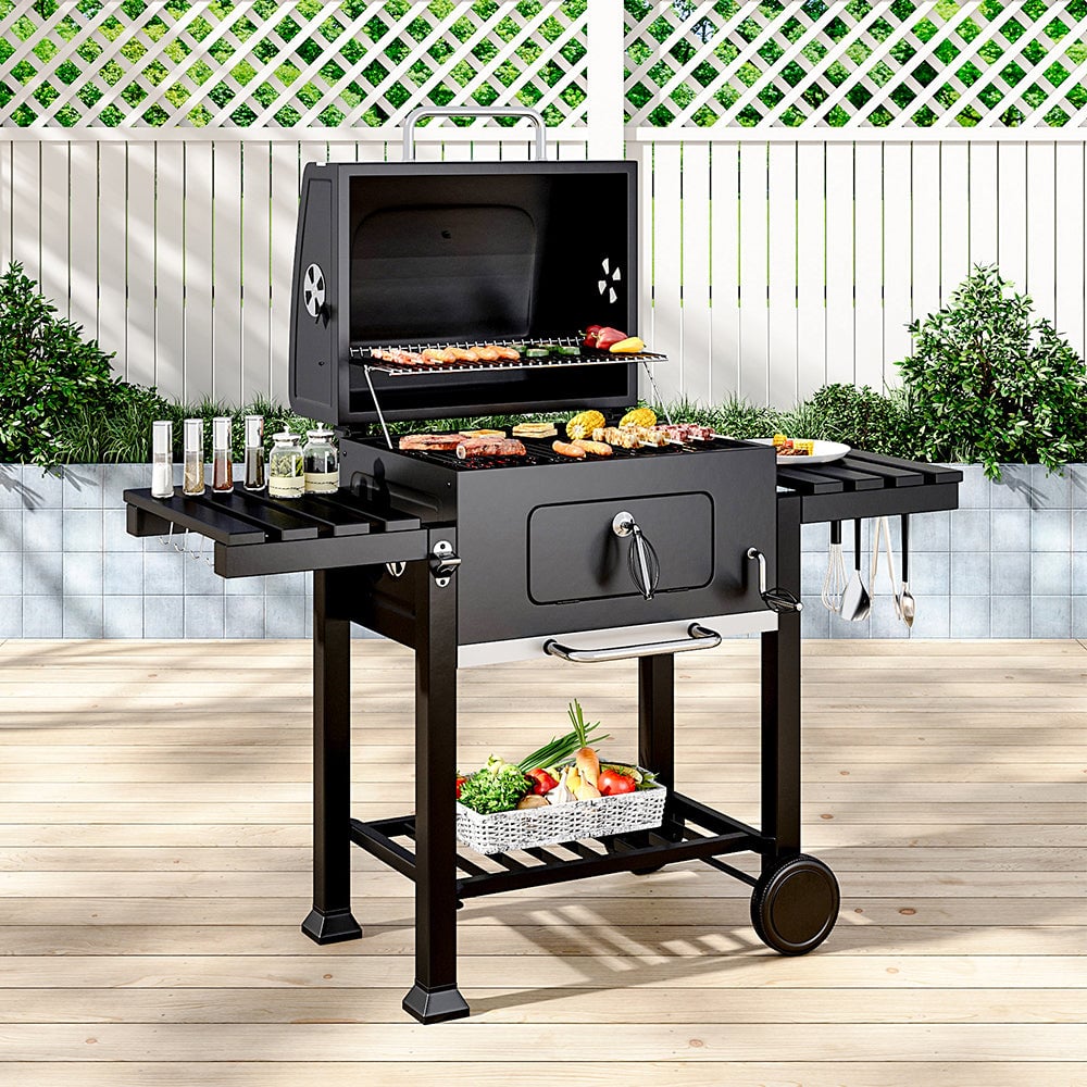 Portable Charcoal BBQ Grill with Double Side Tables, Outdoor Cooking