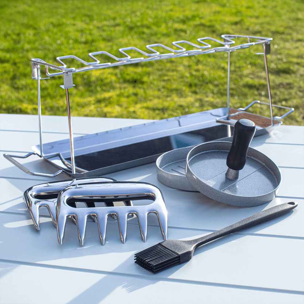 ROXON MBT3 6 in 1 Multifunctional Detachable Folding BBQ Tool Set for Backyard Grilling, BBQ and Camping