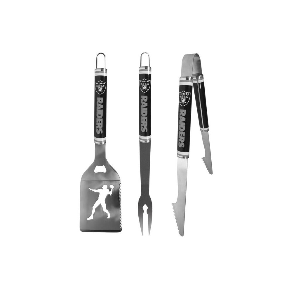 Siskiyou Sports F3LS125 Unisex NFL Las Vegas Raiders 3 Piece Steel BBQ Tool Set - One Size