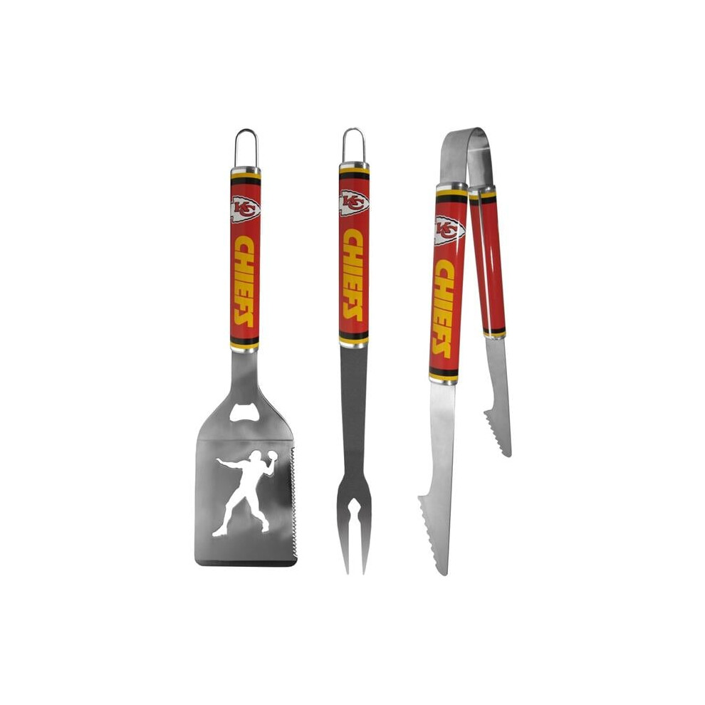 Siskiyou Sports F3LS045 Unisex NFL Kansas City Chiefs 3 Piece Steel BBQ Tool Set - One Size