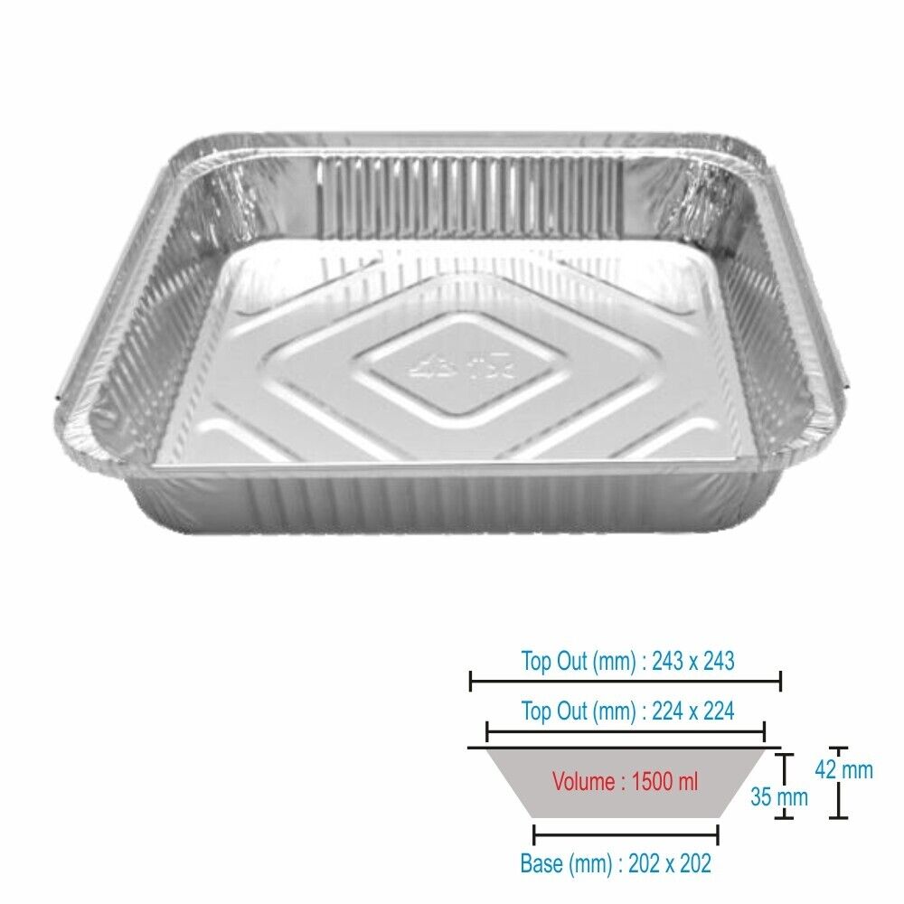 100 x Aluminium Foil Container with Lid 9”x9”x1.5” Heavy Duty BBQ Meal Prep Tray