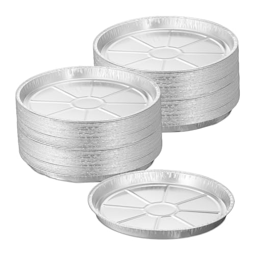 Relaxdays Set of 50 Aluminium Plates, HxØ: 2.5 x 27.5 cm, Round, Catering, BBQ Drip Tray for Indirect Grilling, Silver