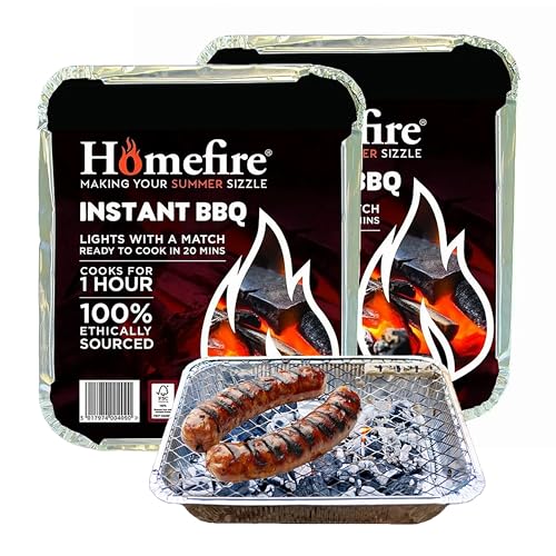 Disposable Portable BBQ Grill Tray - Pack of 2 Instant Light Charcoal Barbecues Grill Tray with Topline Card for Garden BBQs, Camping BBQ, Fishing or Picnic Set