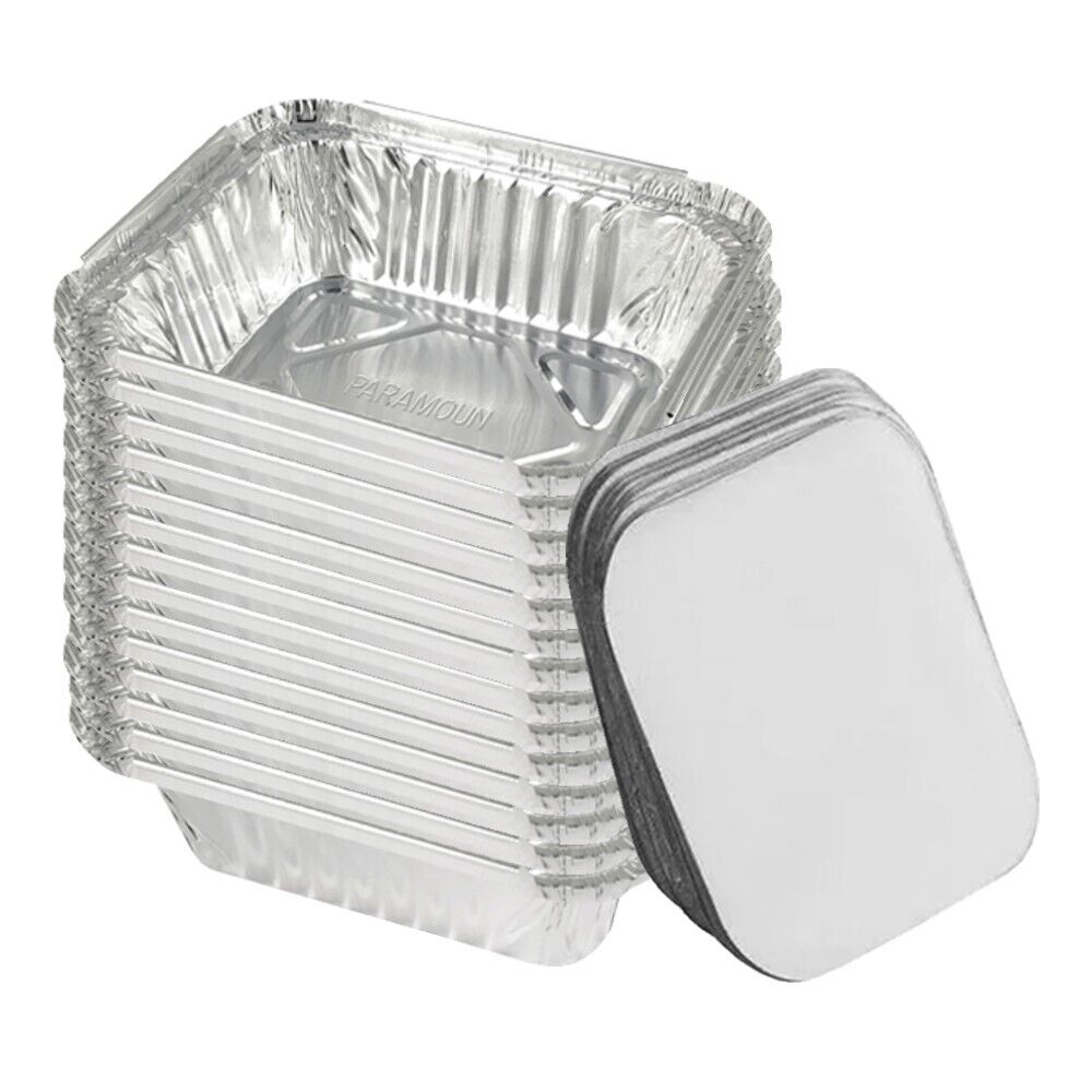 50 Aluminium Foil Containers & Lid 120ml BBQ Meal Prep Tray Disposable Takeaway