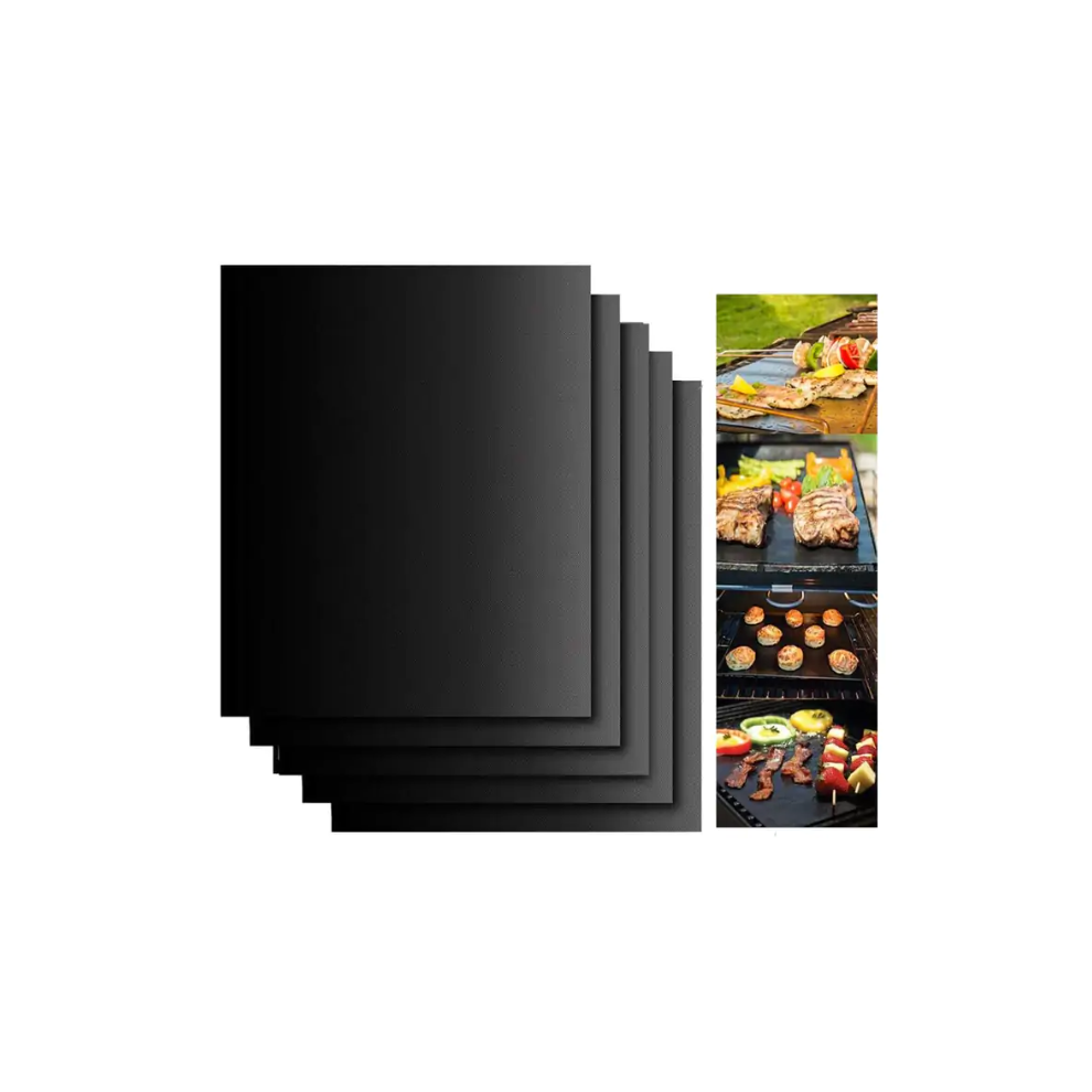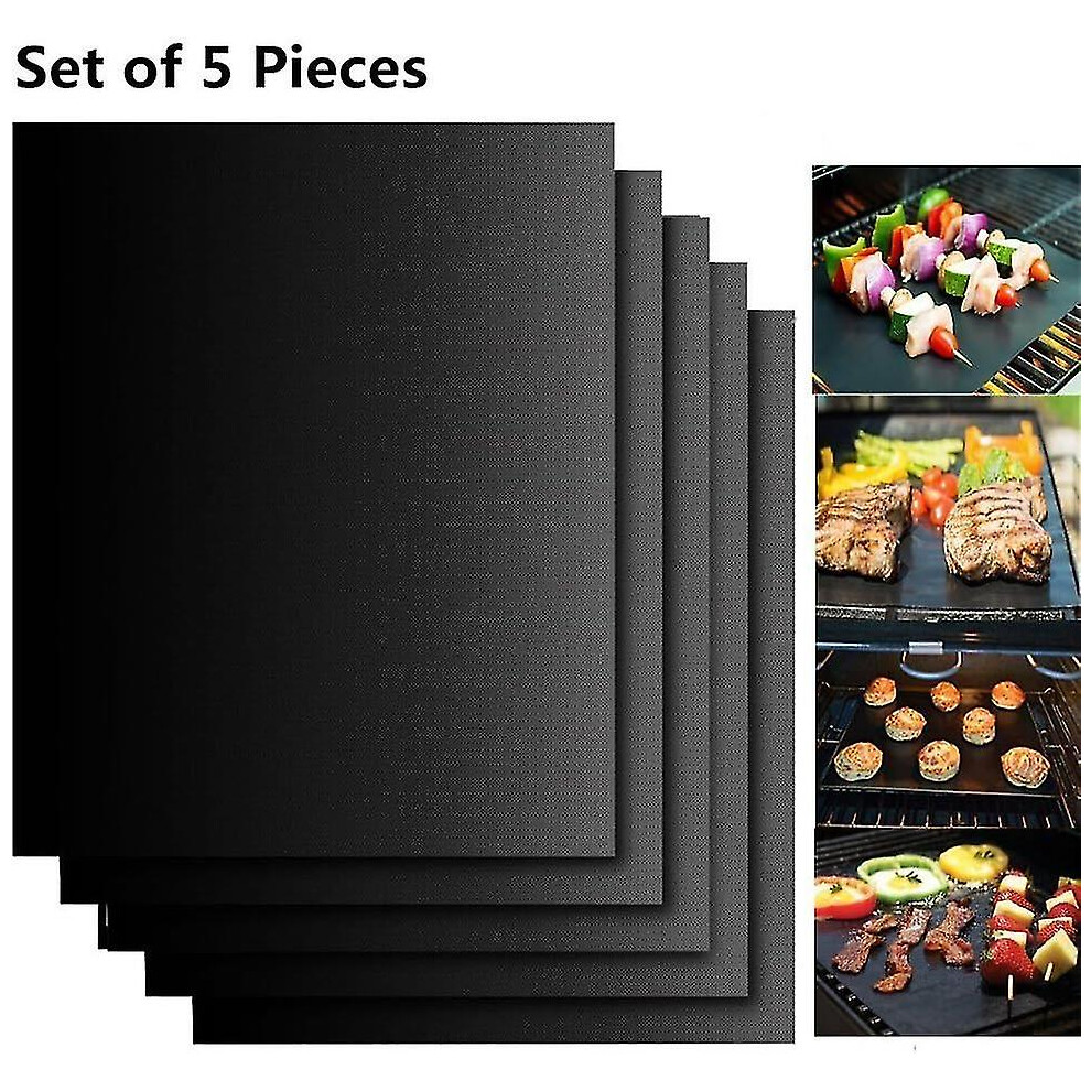 EXTSUD BBQ Grill Mat, 5 Pcs bbq Grill Mats Non Stick Reusable and Baking Mesh for Indoor Outdoor BBQ Works on Gas Charcoal Electric Grill Sheets 40x33CM (Black)
