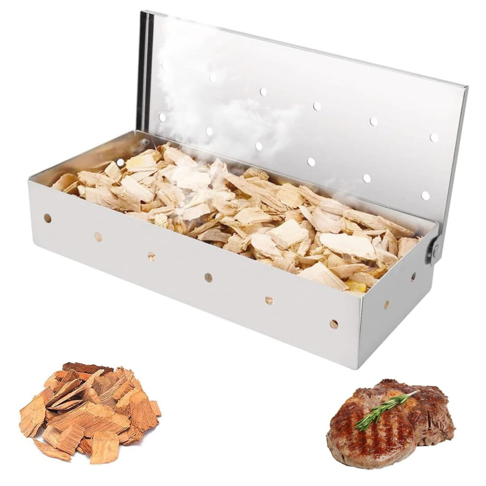 Smoker Box for Wood Chips Compatible with Gas Grill, Charcoal Grill, Stainless Steel BBQ, and Wood Pellet Grill
