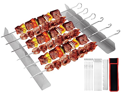 KEYIDO BBQ Skewer Rack Set, 2 Kebab Racks and 12 Barbecue Skewers, Stainless Steel Meat Skewers with Holder, Universal Skewers Accessories for Gas Grill, Charcoal Grill, Smoker (14-Pack)