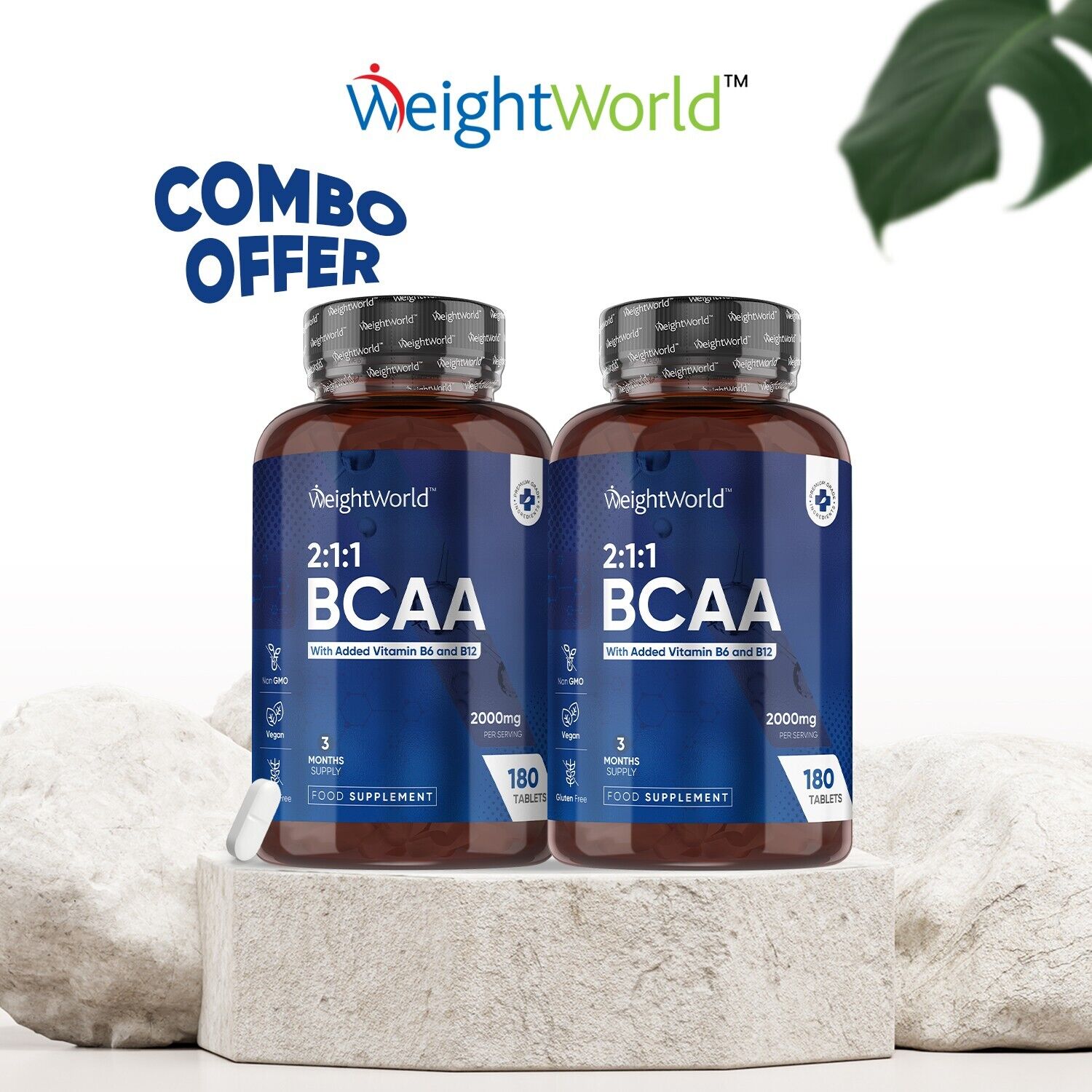 BCAA Tablets 2000Mg - 180 Tablets - with Essential Amino Acids - Vitamin B6 & B1