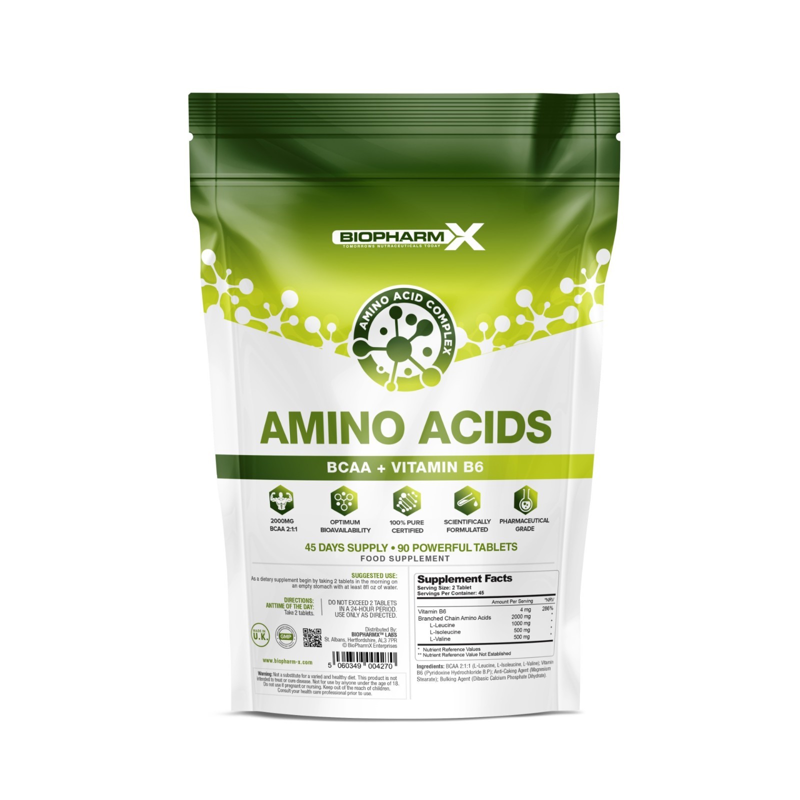 BCAA Tablets 2000mg - 180 - with Essential Amino Acids - Vitamin B6...