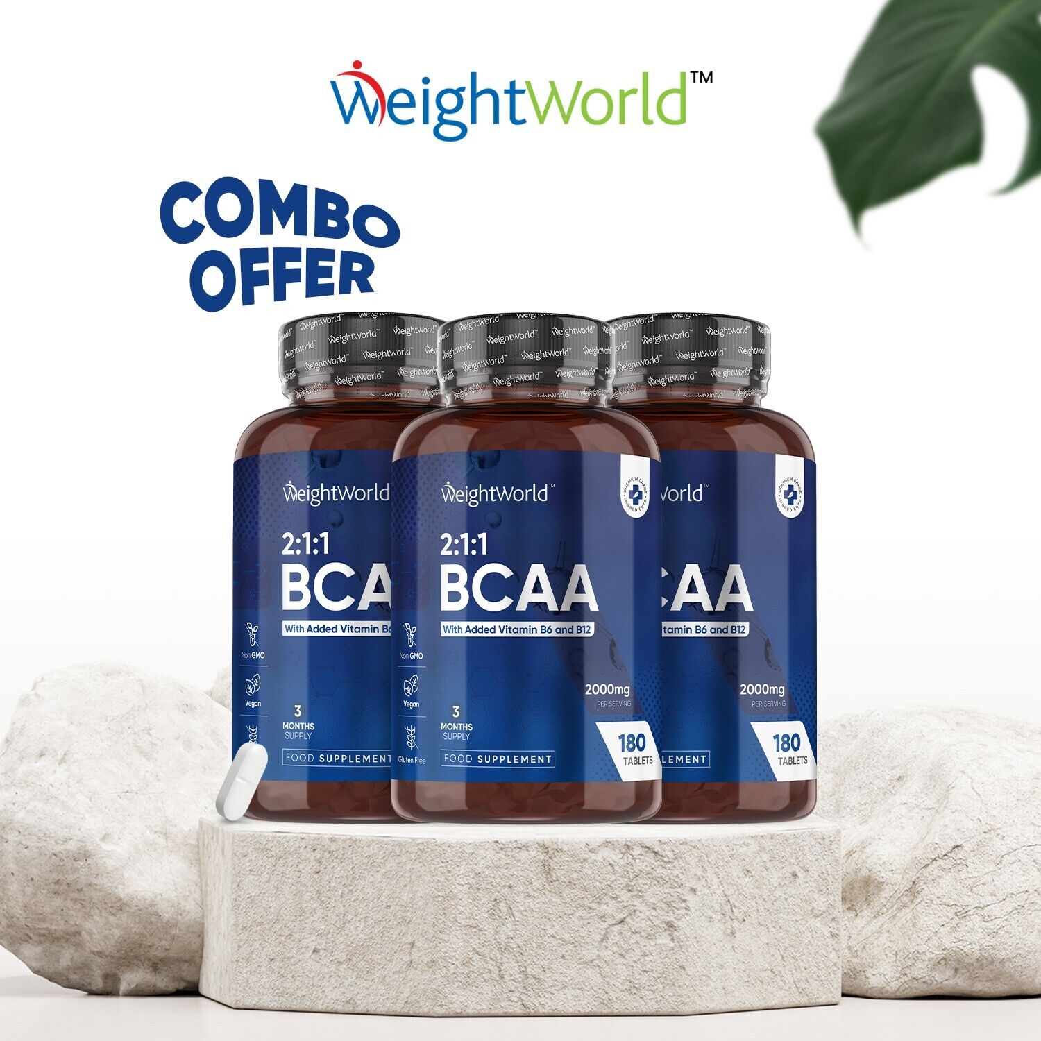 BCAA - Amino acid 180 Protein Tablets x3 - Pre Workout - Vitamin B12, Vitamin B6