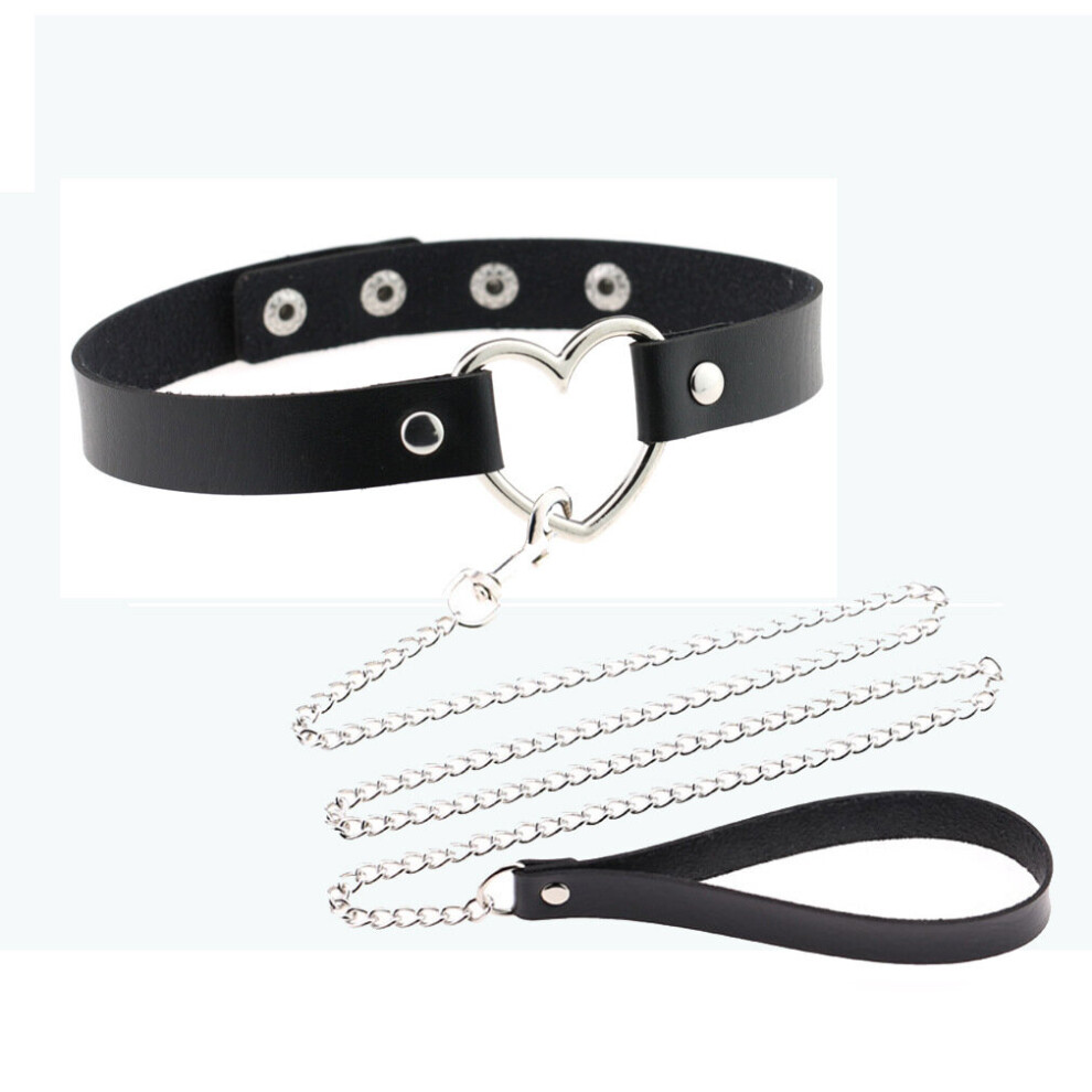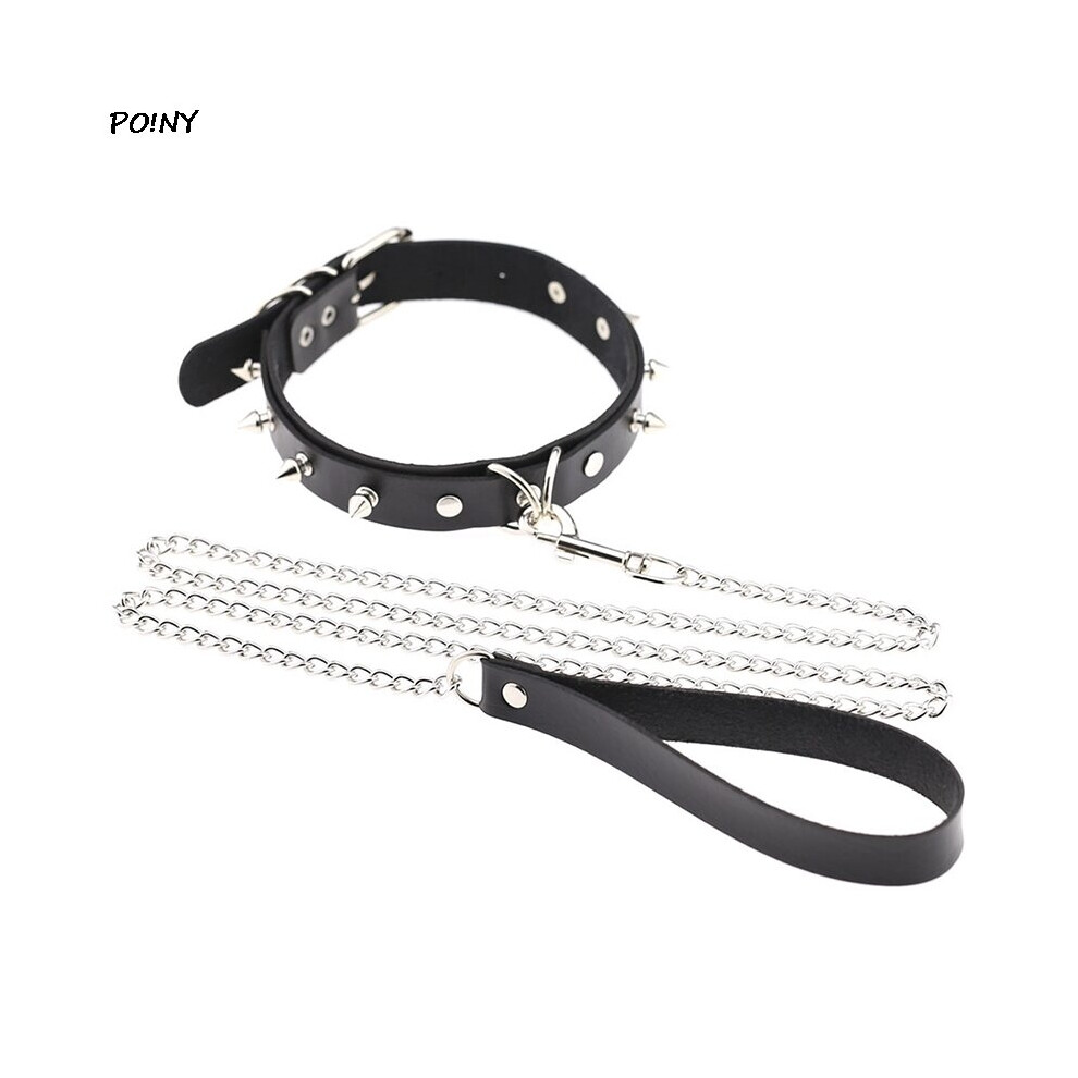 women Sexy Rivet Spike Punk Collar Leather Lead Chain necklace Choker Slave Costume BDSM Bondage Necklace Gothic Accessories