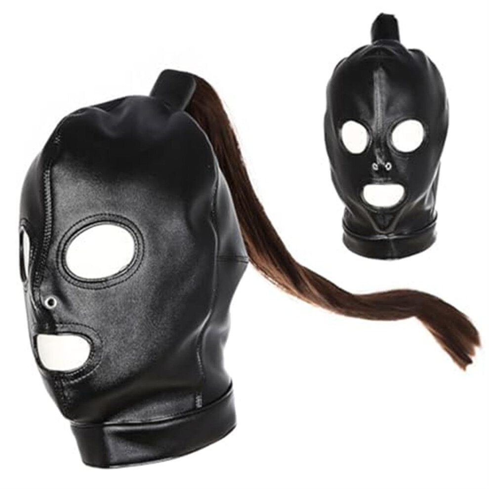 Horse Head Mask Black Leather Monster Hood Halloween Carnival Costume Masquerade BDSM Cosplay Eye Openings