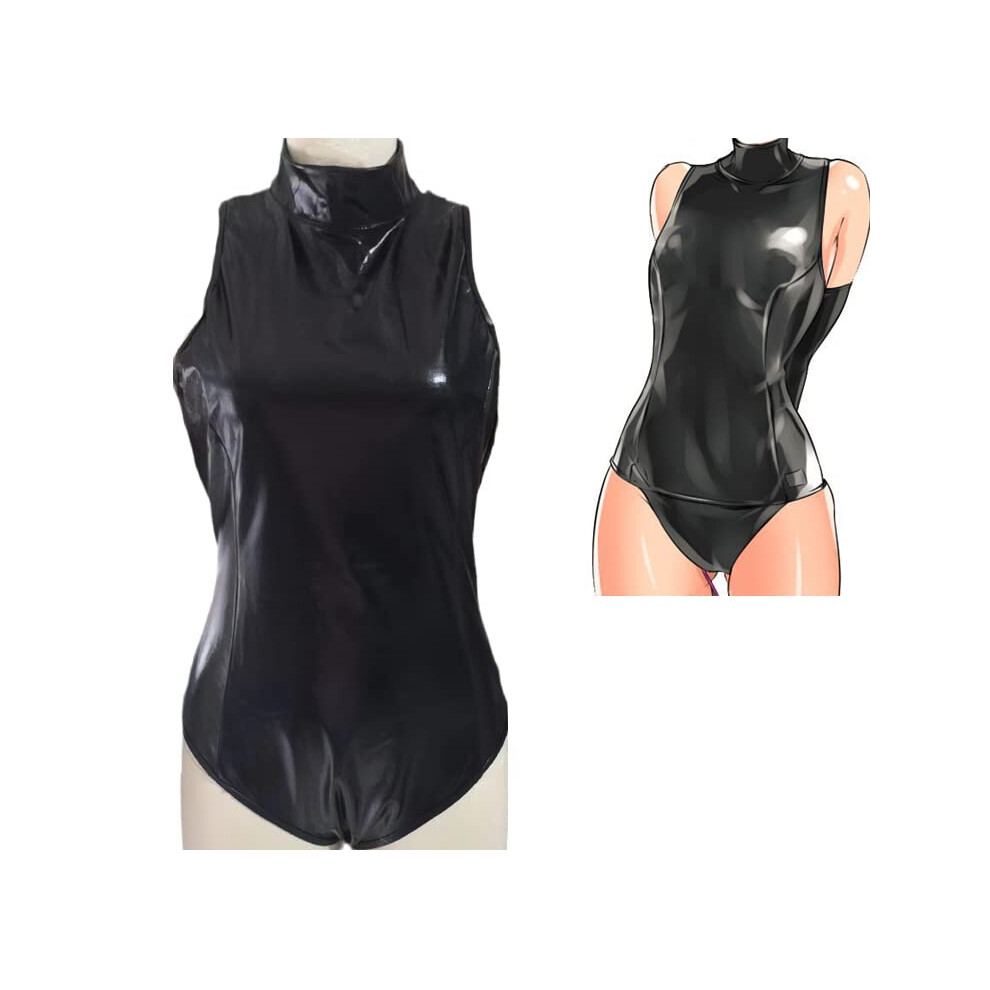 Latex Lingerie for Women, Black Patent Leather Bodysuit, Kinky Fetish Costume, Size L, BDSM Cosplay Catsuit