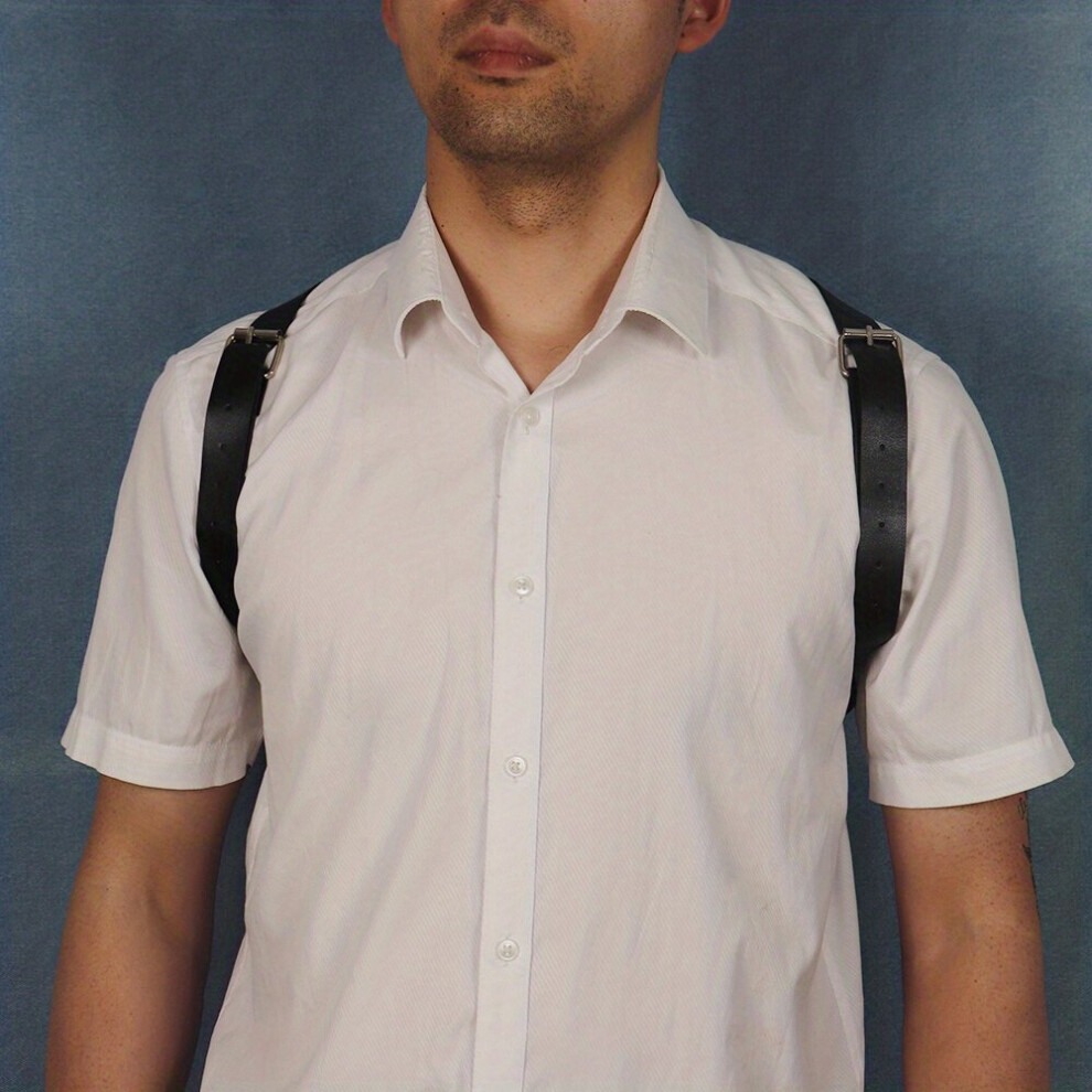 BDSM Mens Sleeveless Body Chest Harness PU Leather Adjustable Punk Chest Belt For Cosplay Party Costume