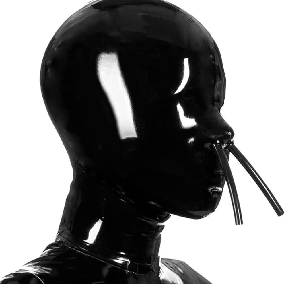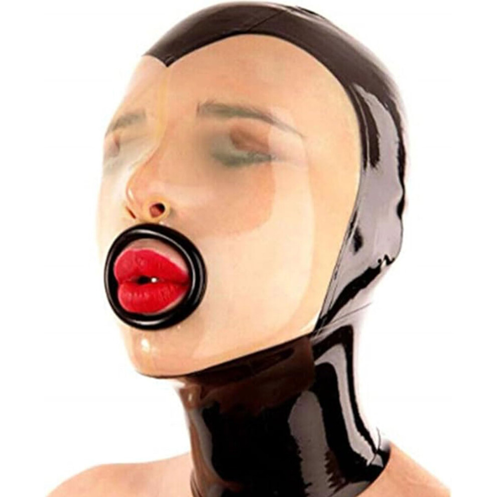 WXLPCGO Latex Hood Mask Open Eyes Mouth BDSM Full Face Latex Mask Cosplay Party Wear Costume Back Zipper(Size:XS-60CM)
