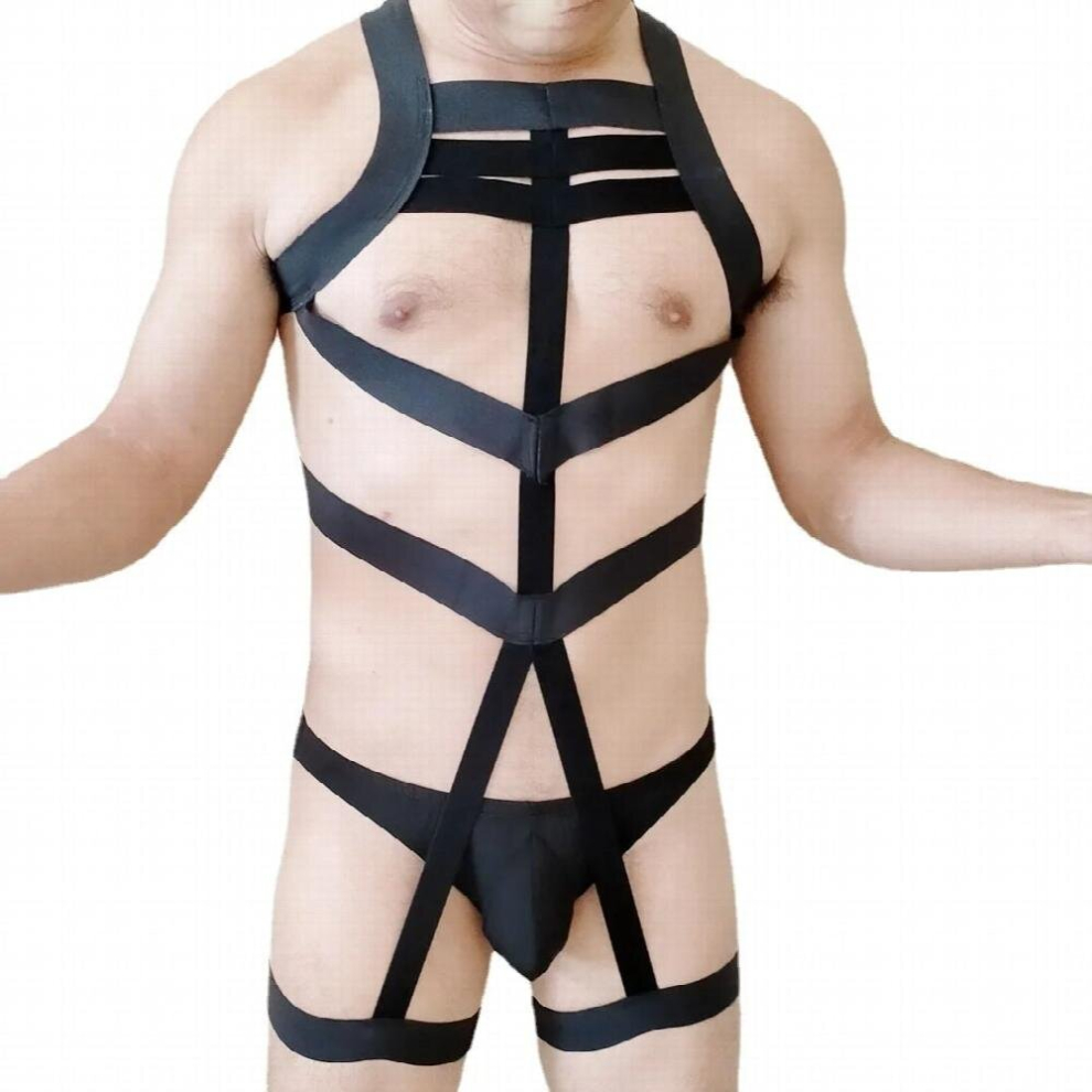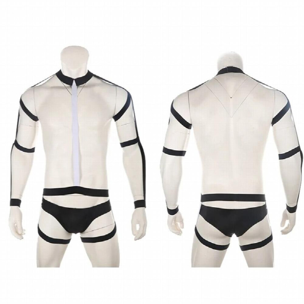 Mens Sexy Harness Set BDSM Exotic Lingerie Bondage Body Halter Belt Jumpsuit Elastic Fetish Costume with Briefs