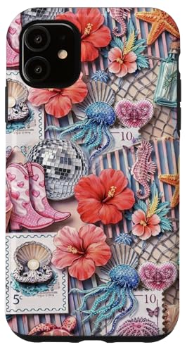 Coastal Beach Summer Hibiscus Disco Ball Cowgirl Aestheti Case for iPhone 11