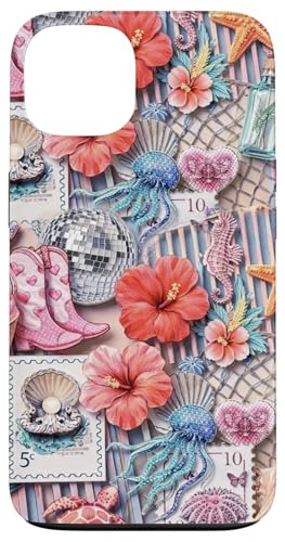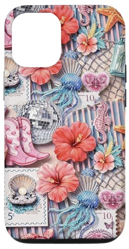 Coastal Beach Summer Hibiscus Disco Ball Cowgirl Aestheti Case for iPhone 13 Pro Max