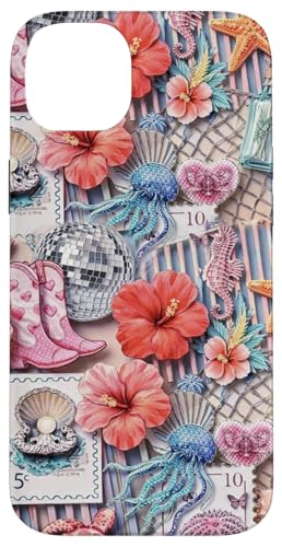 Coastal Beach Summer Hibiscus Disco Ball Cowgirl Aestheti Case for iPhone 15 Plus