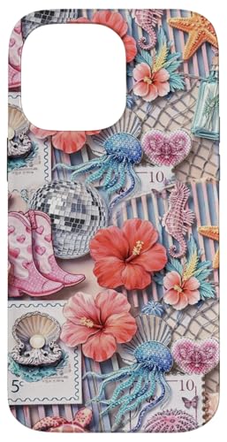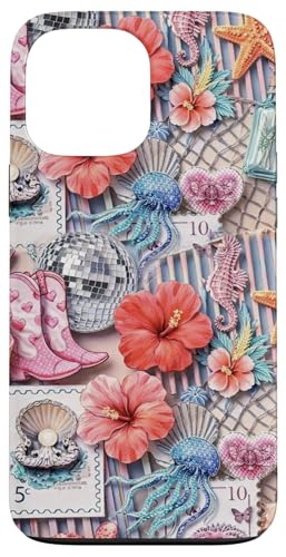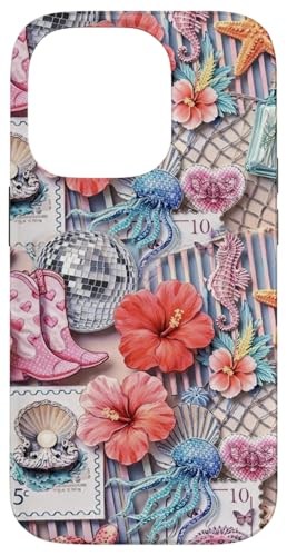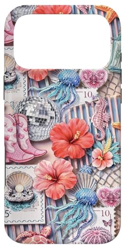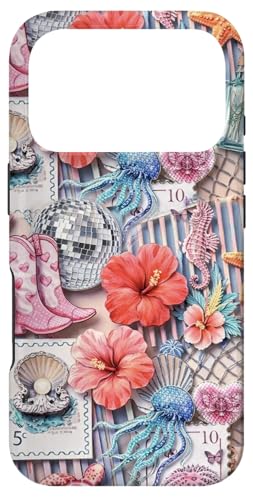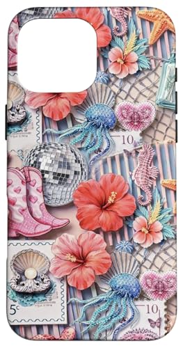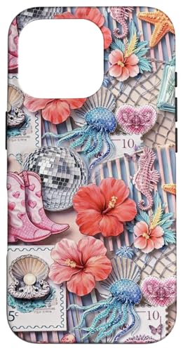Coastal Beach Summer Hibiscus Disco Ball Cowgirl Aestheti Case for iPhone 16 Pro