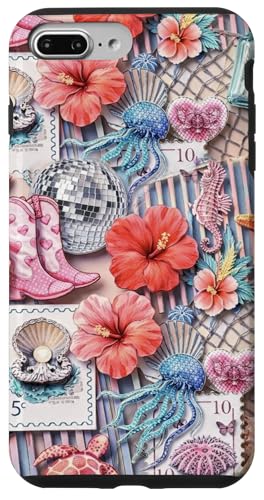 Coastal Beach Summer Hibiscus Disco Ball Cowgirl Aestheti Case for iPhone 7 Plus/8 Plus