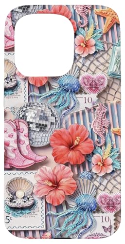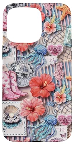 Coastal Beach Summer Hibiscus Disco Ball Cowgirl Aestheti Case for iPhone 15 Pro