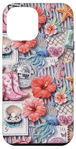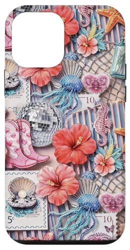 Coastal Beach Summer Hibiscus Disco Ball Cowgirl Aestheti Case for iPhone 16 Pro Max