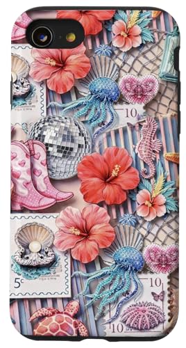 Coastal Beach Summer Hibiscus Disco Ball Cowgirl Aestheti Case for iPhone SE (2020) / 7/8