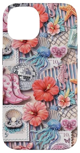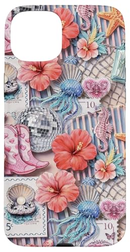 Coastal Beach Summer Hibiscus Disco Ball Cowgirl Aestheti Case for iPhone 15 Pro Max