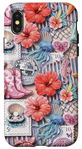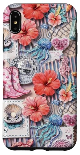Coastal Beach Summer Hibiscus Disco Ball Cowgirl Aestheti Case for iPhone XS Max