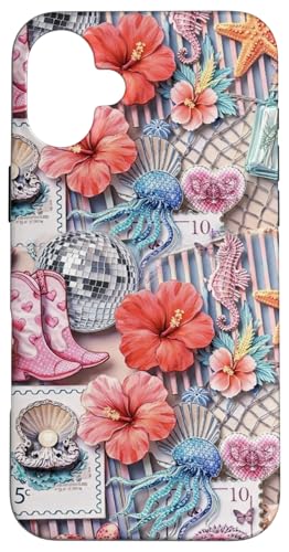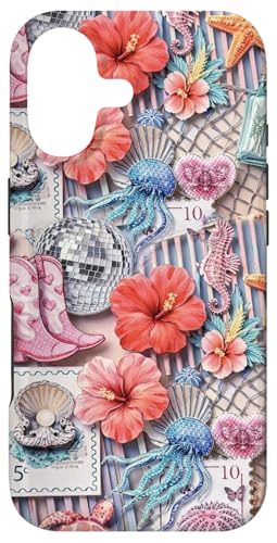 Coastal Beach Summer Hibiscus Disco Ball Cowgirl Aestheti Case for iPhone 16 Plus
