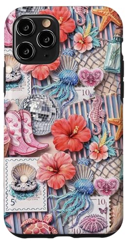 Coastal Beach Summer Hibiscus Disco Ball Cowgirl Aestheti Case for iPhone 11 Pro