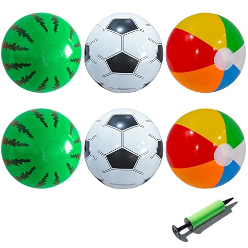 BeoTnp 6 PCS Beach Ball, Beach Balls Inflatable, with Air Pump, for Summer Pool Games Beach Party Balls, Lightweight and Durable,Kids and Adults Summer Pool Party Toys(36cm)