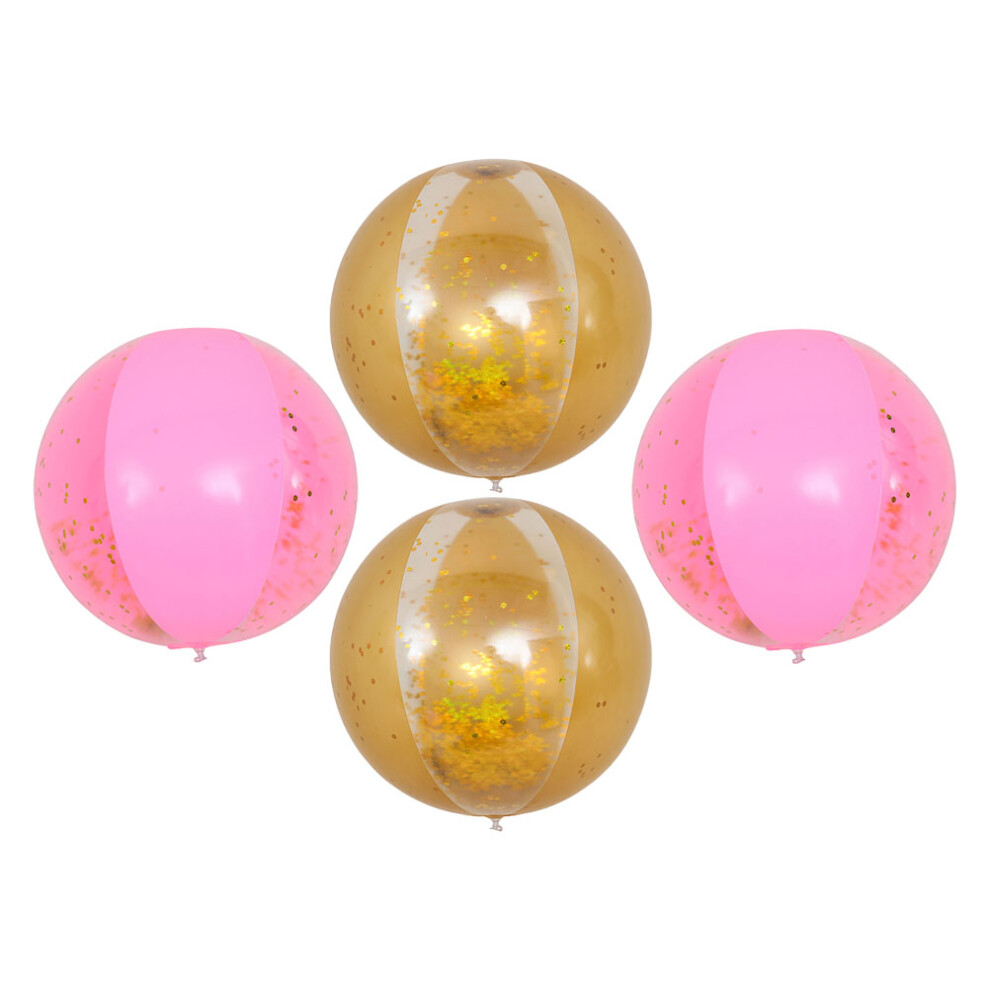 (As show, One size) 4 Pack 16 Inch Inflatable Glitter Beach Ball Confetti Beach Ball