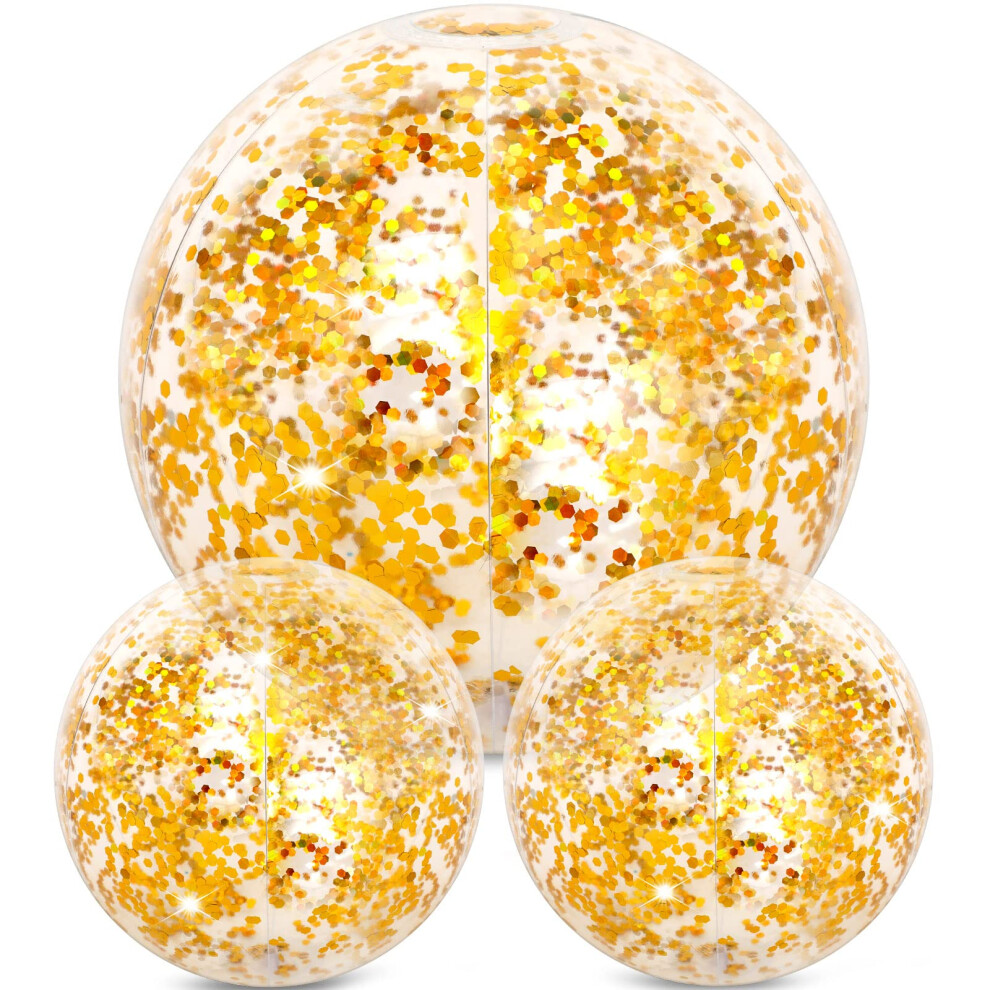 Hsei 3 Pieces Inflatable Beach Ball Glitter Beach Ball Floatable Confetti Ball for Summer Beach Pool and Party Favor Gold