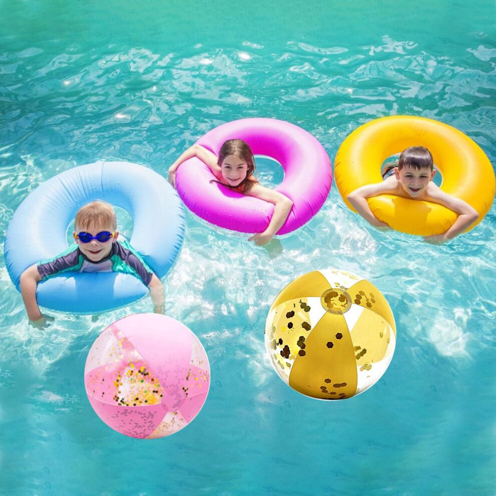 Durable Material Inflatable Beach Ball, Glitter Beach Ball with Portable Design and Confetti Filled Shiny Sequins, UV Protected Quick Valve System