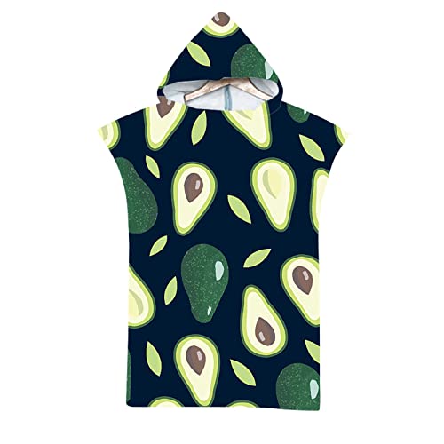 Highdi Beach Poncho Towel Adults, Avocado Print Hooded Beach Towel Changing Robe/Surf Changing Towel/Microfibre Water Absorbent Swimming Towel Poncho, One Size fit Men Women (Avocado Fruit)