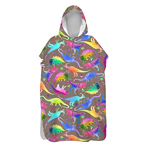 Treer Adult Beach Poncho Changing Robe, 3D marble Print Quick Dry Absorbent Surf Hooded Towel Poncho Microfiber Poncho with Hood Ideal for Adult Woman & Man Child (80x145cm,colorful dinosaur)